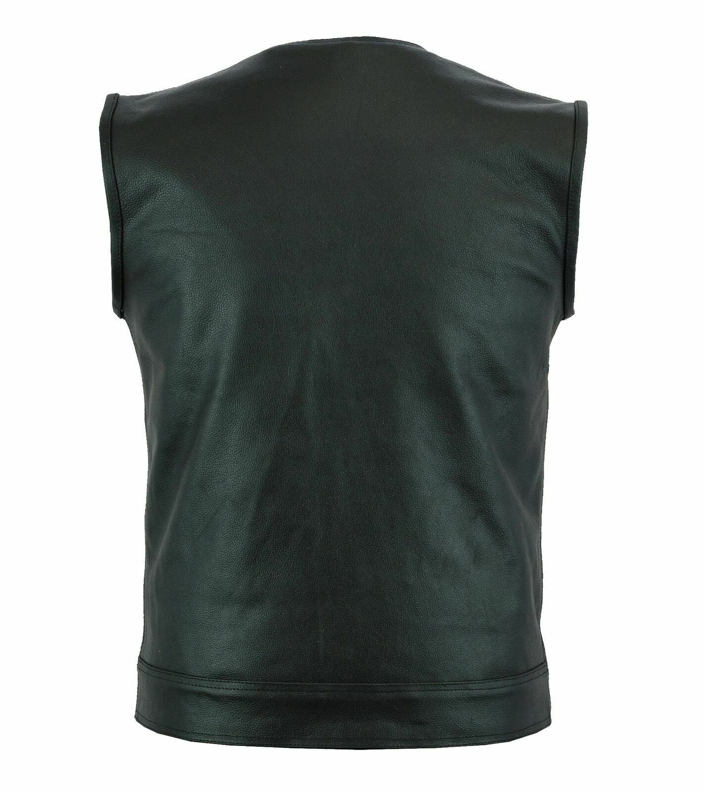 Men's SOA Collarless Leather Vest Motorcycle Biker Club Concealed Carry Outlaws SPT
