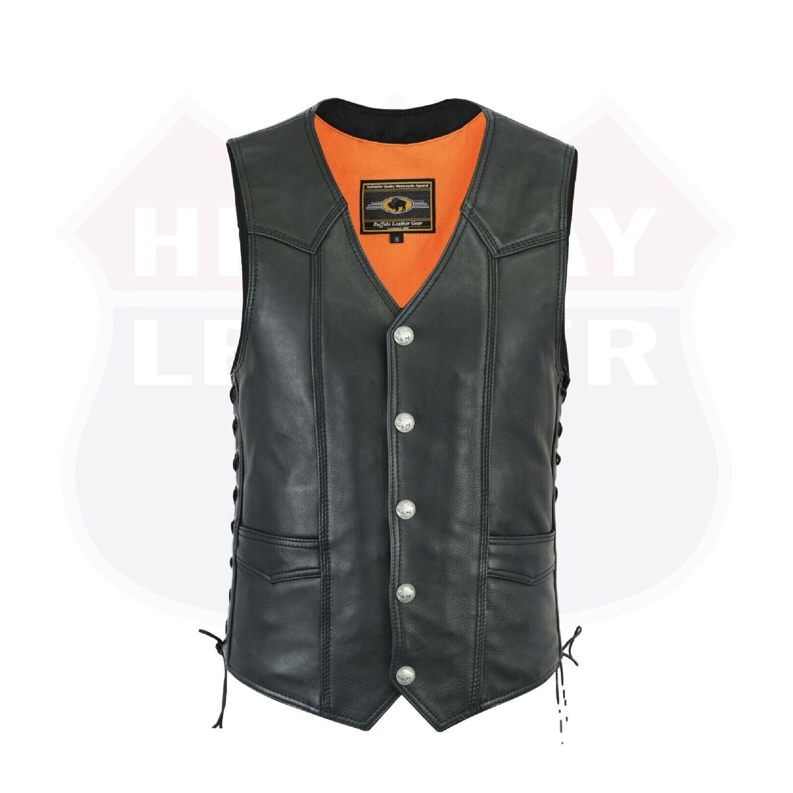 ✅ ENHANCED FEATURES: 2 OZ Cow hide 100% Genuine Natural Leather of high quality. Lace up sides can adjust sizing that makes it perfect for layering. Extremely easy to sew large club colors, patches, or custom embroidery. Classic Look.