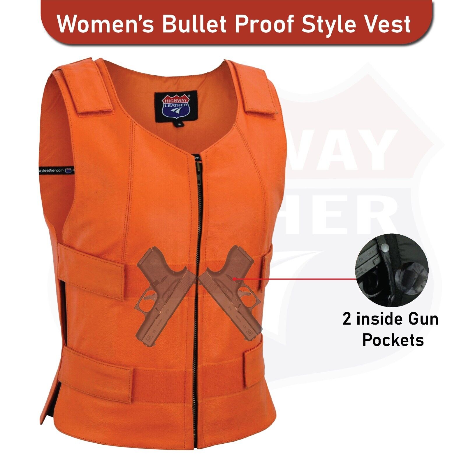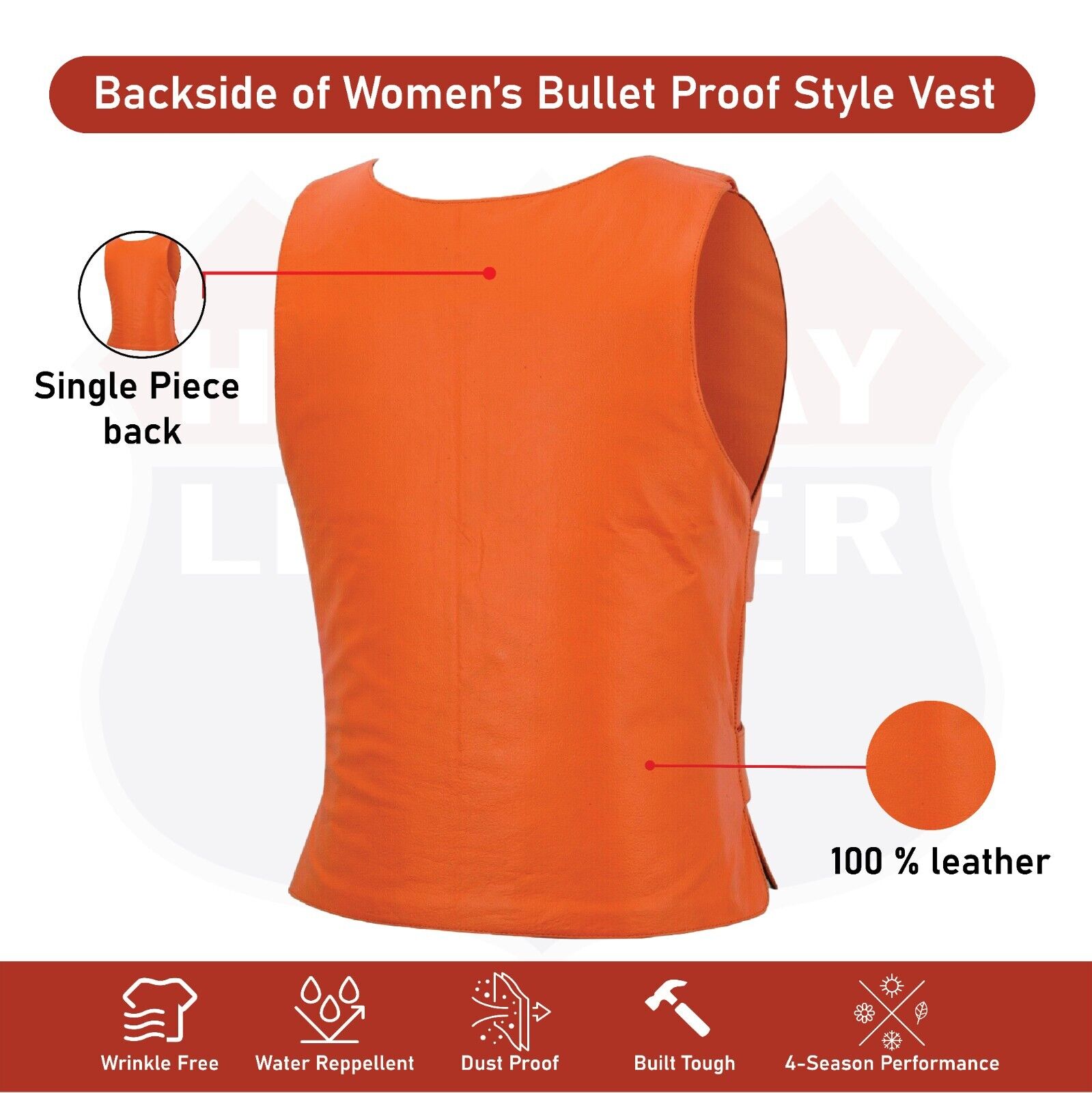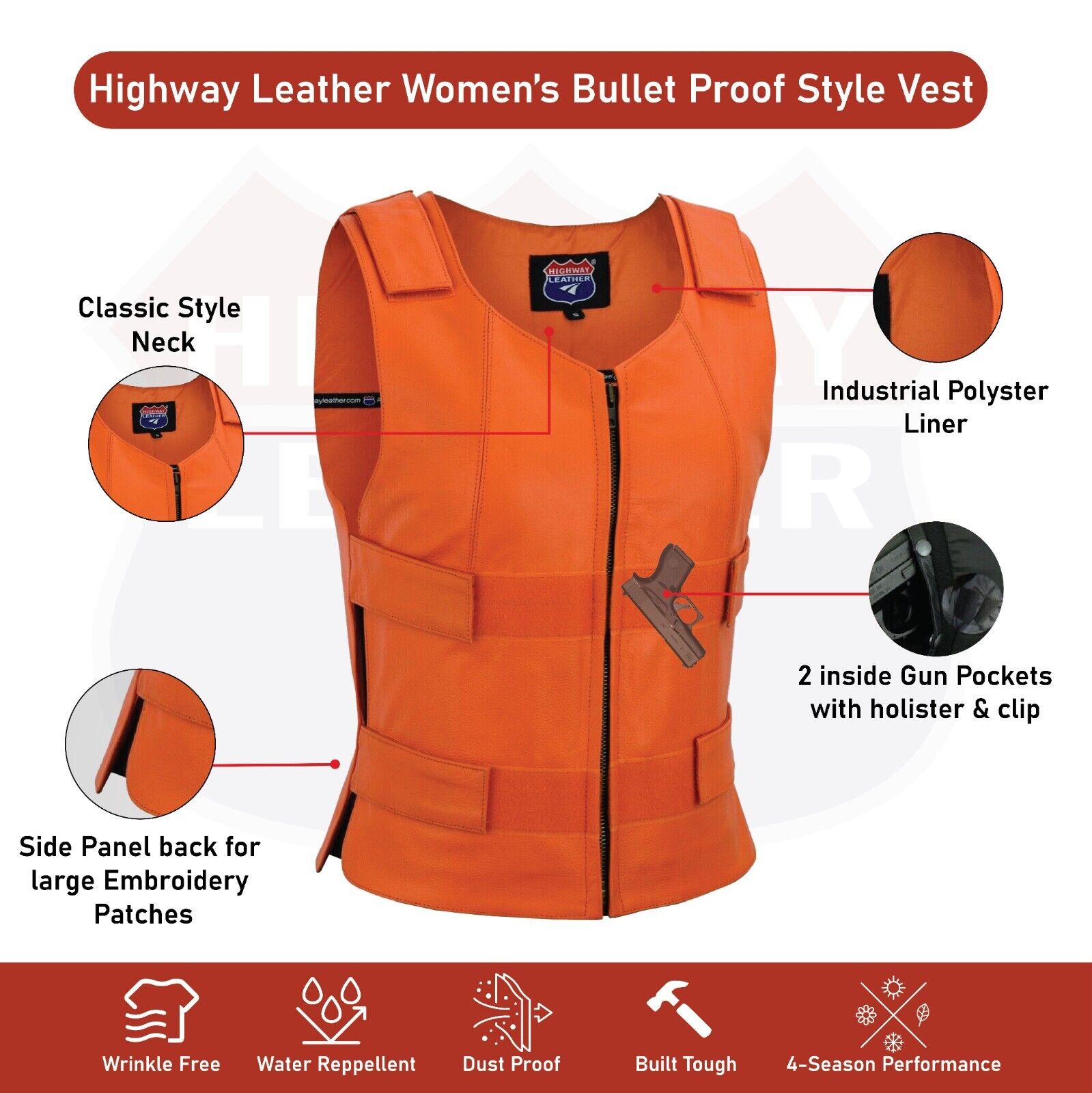 Our Women bullet proof leather vest captures the bullet proof design of our Men's but cut for Women's sizing. Our Ladies Zippered Street Racer Tactical Vest can be adjusted to fit over jackets. What makes our leather bulletproof style vest better than the competition?