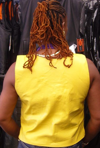 Women Yellow bullet proof style leather vest- for biker club