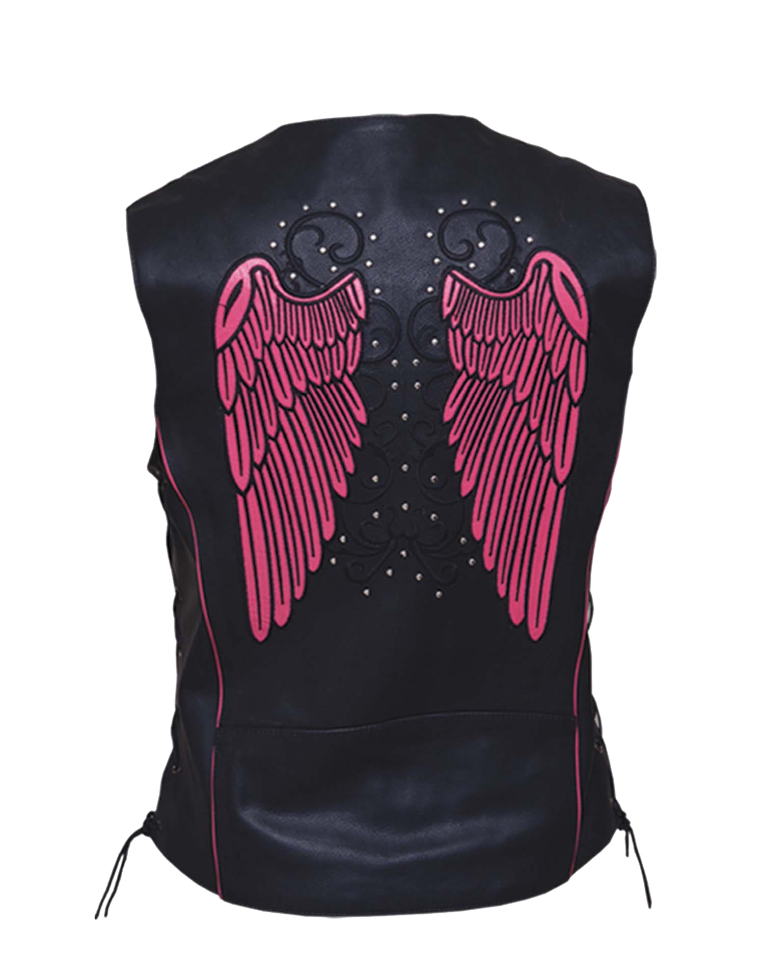 Ladies Premium Motorcycle Vest with Wing Embroidery on back