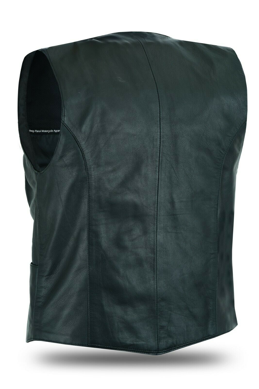 Ladies Womens solid soft leather biker motorcycle vest black concealed carry
