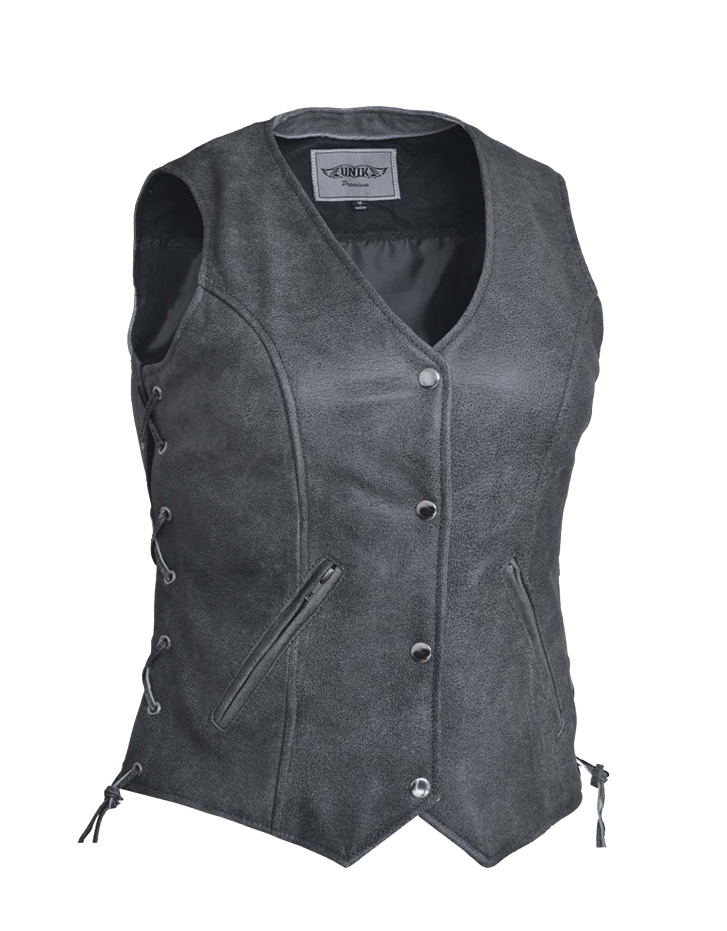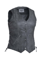 - Ladies Tombstone Gray Premium Motorcycle Leather Vest