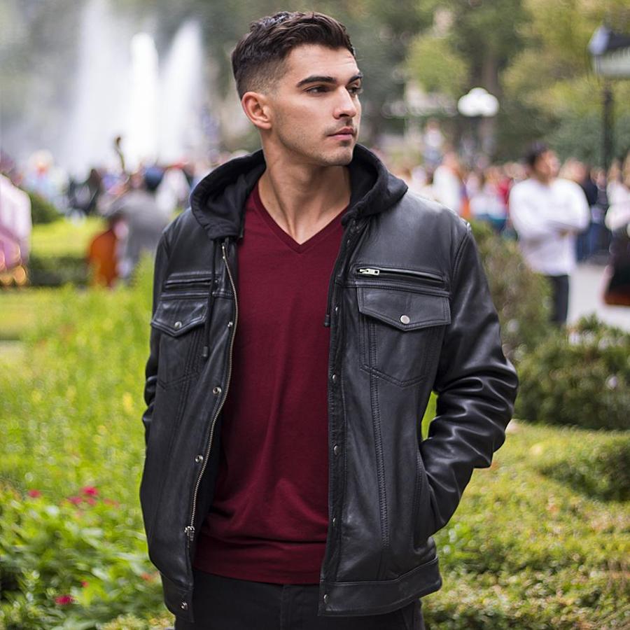 AXEL - MENS'S HOODED LEATHER JACKET