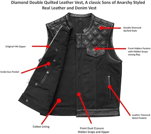 The Hunt Club is one of our most popular club style vests, for good reason! With a 20oz canvas body and diamond quilted cowhide shoulders, with leather accents throughout. It's got a cropped zipper, for more comfort while riding your motorcycle. It's also got two conceal carry pockets for whatever you need to carry!