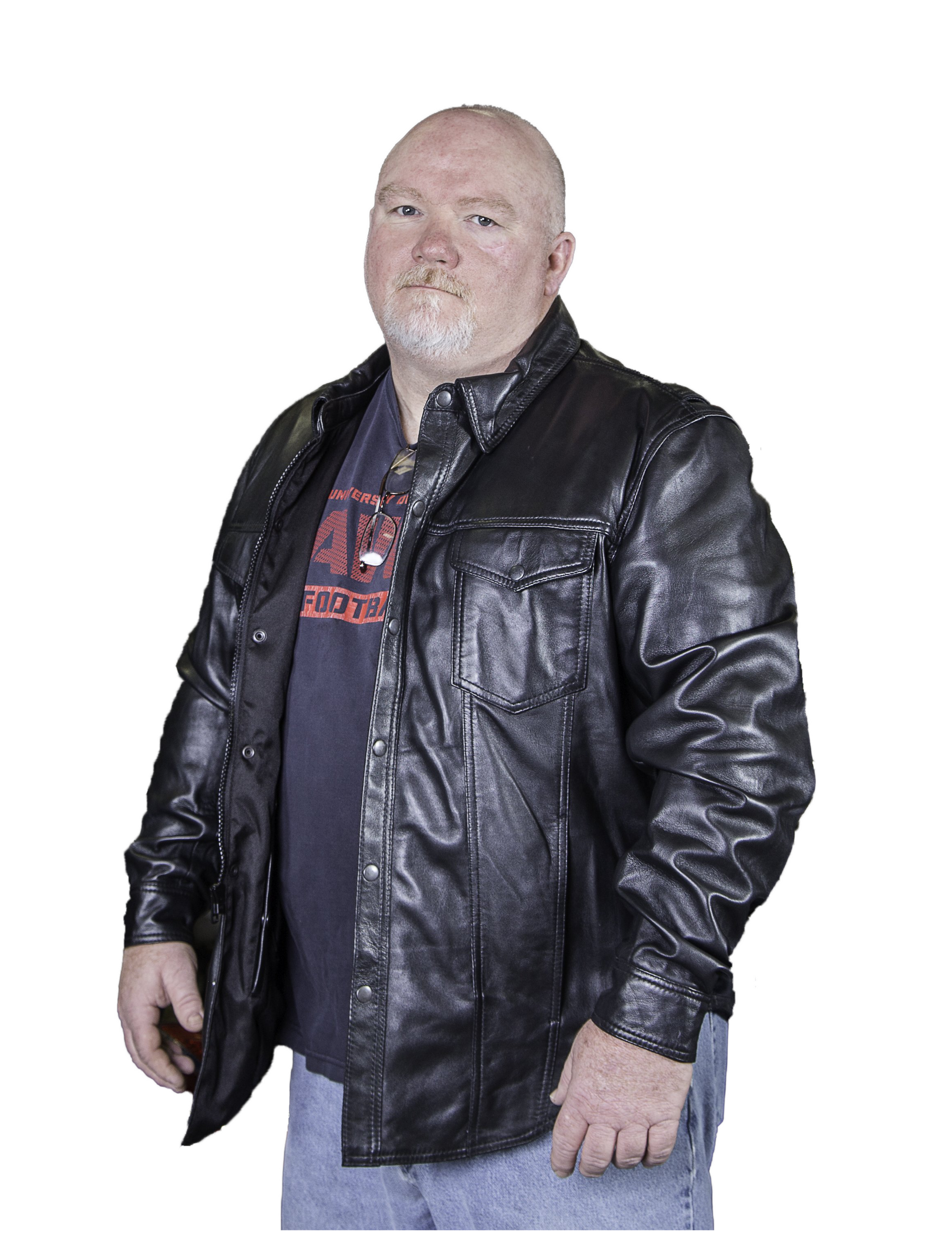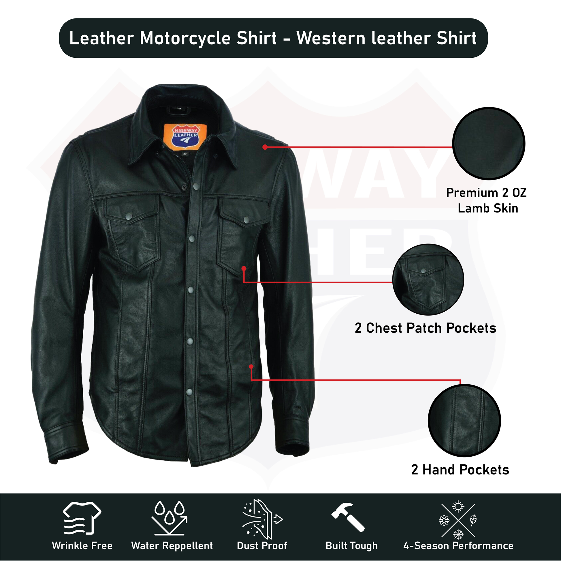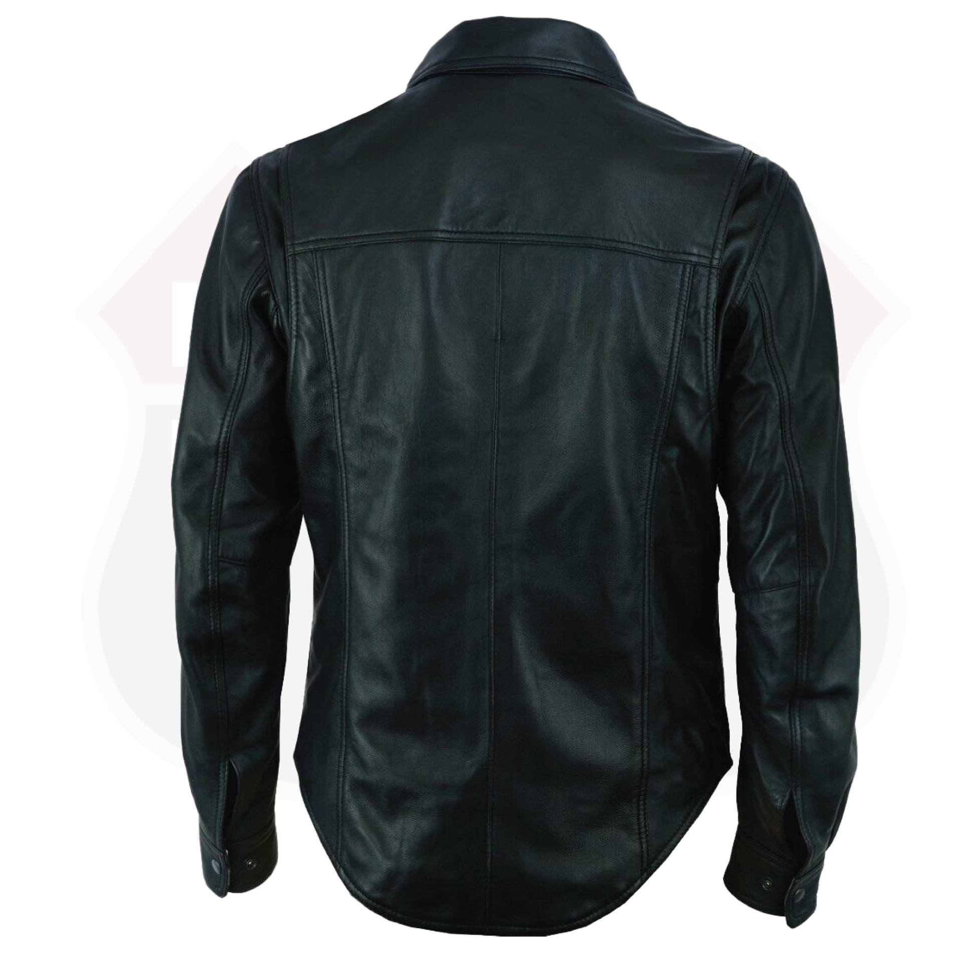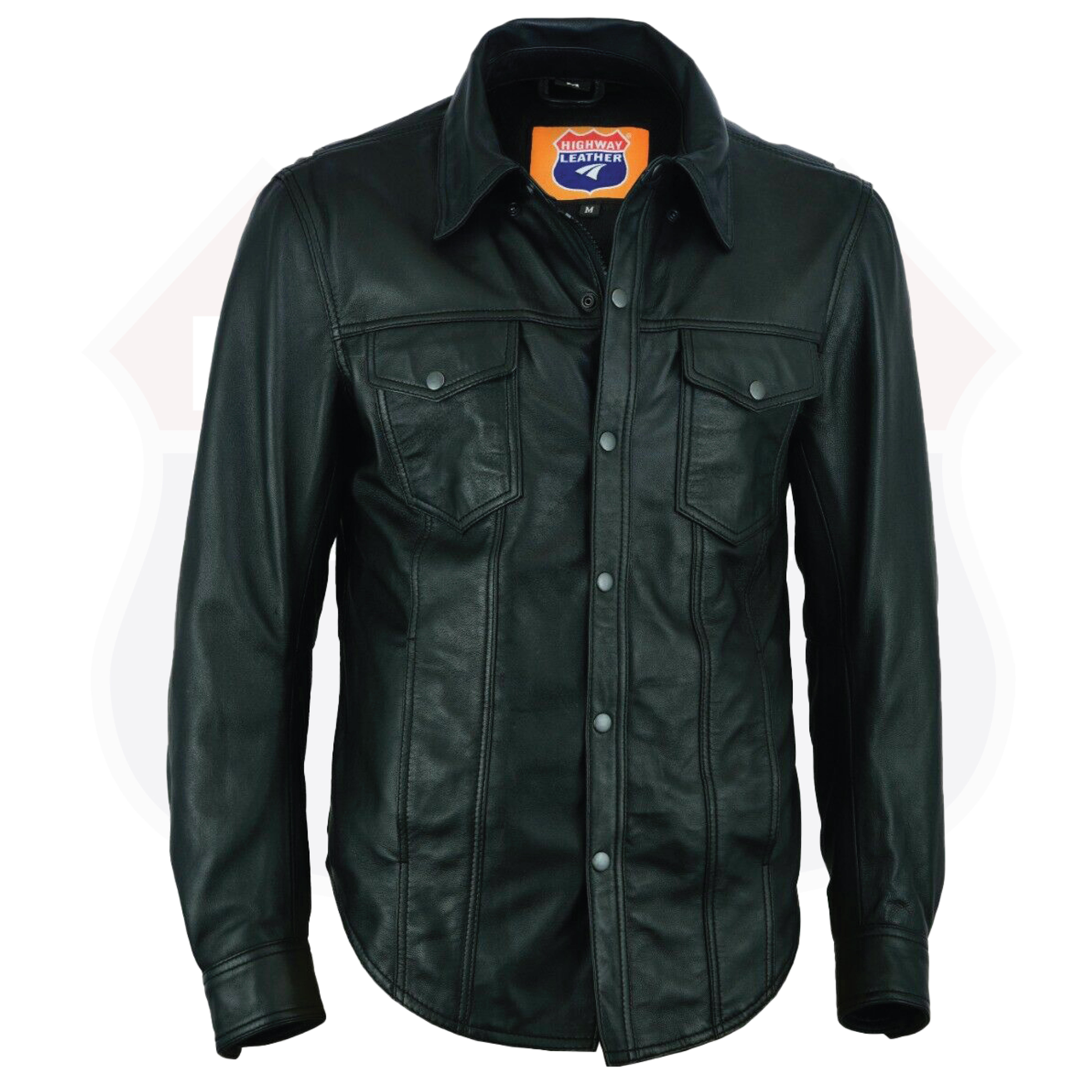 Lightweight but heavy enough to wear on cooler than normal days. Our black leather snap-up jean style shirt is probably the hottest item because of the soft lamb leather used to make it. This shirt is full cut with two chest pockets (snapped flaps) and has snap-on cuffs. This lamb leather shirt is very soft!