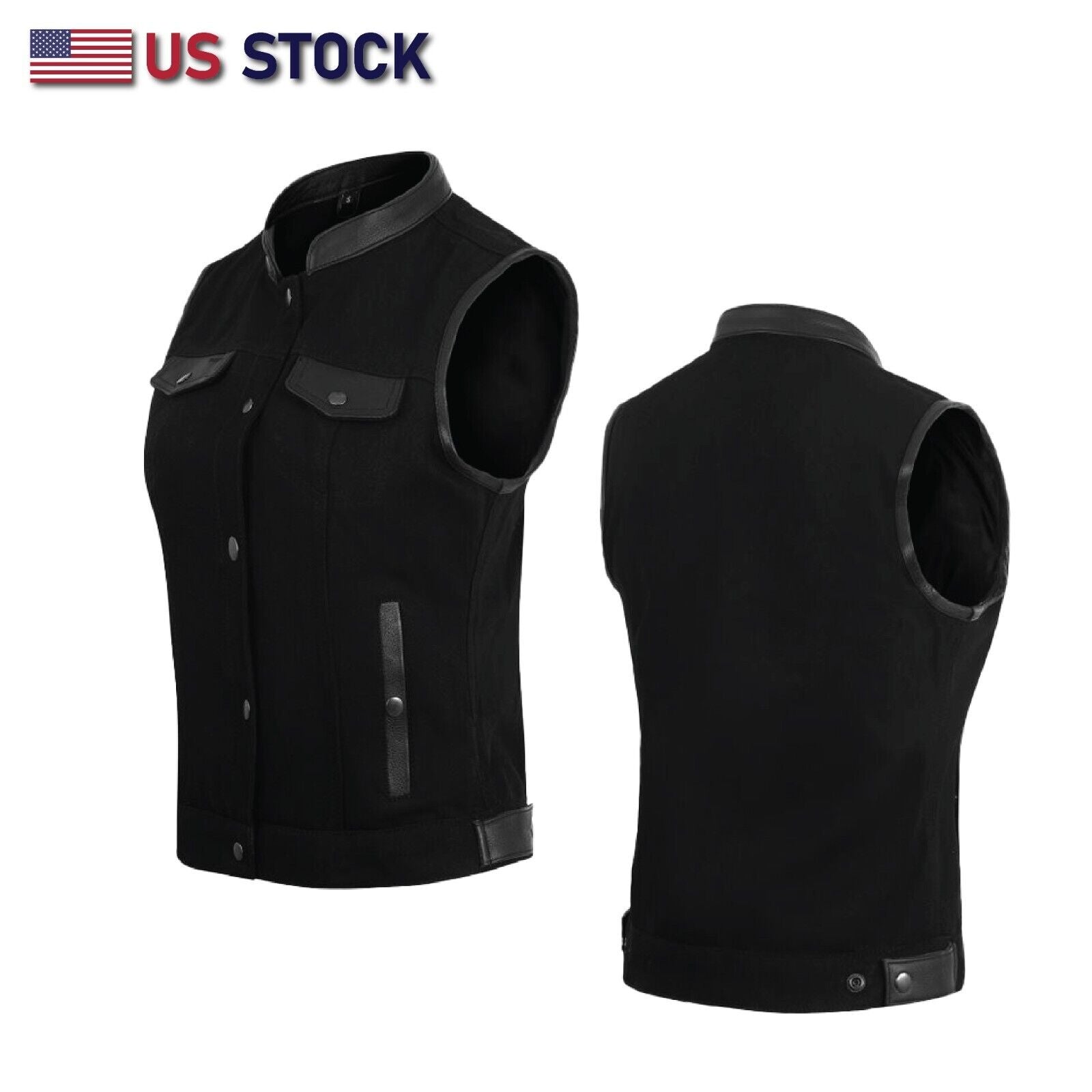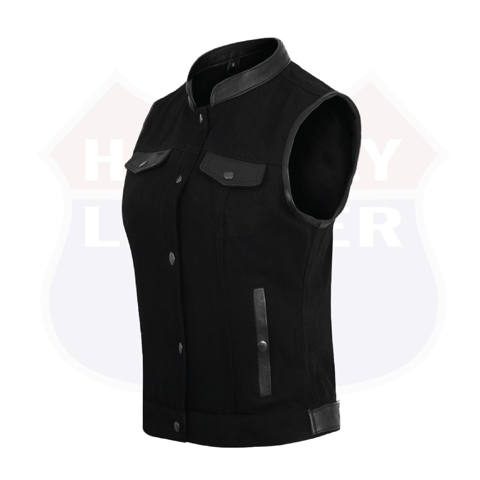 ✅ Stuff & Composition: Women’s Denim Club Vest. Made from quality black denim, Zipper and button-snap front closure