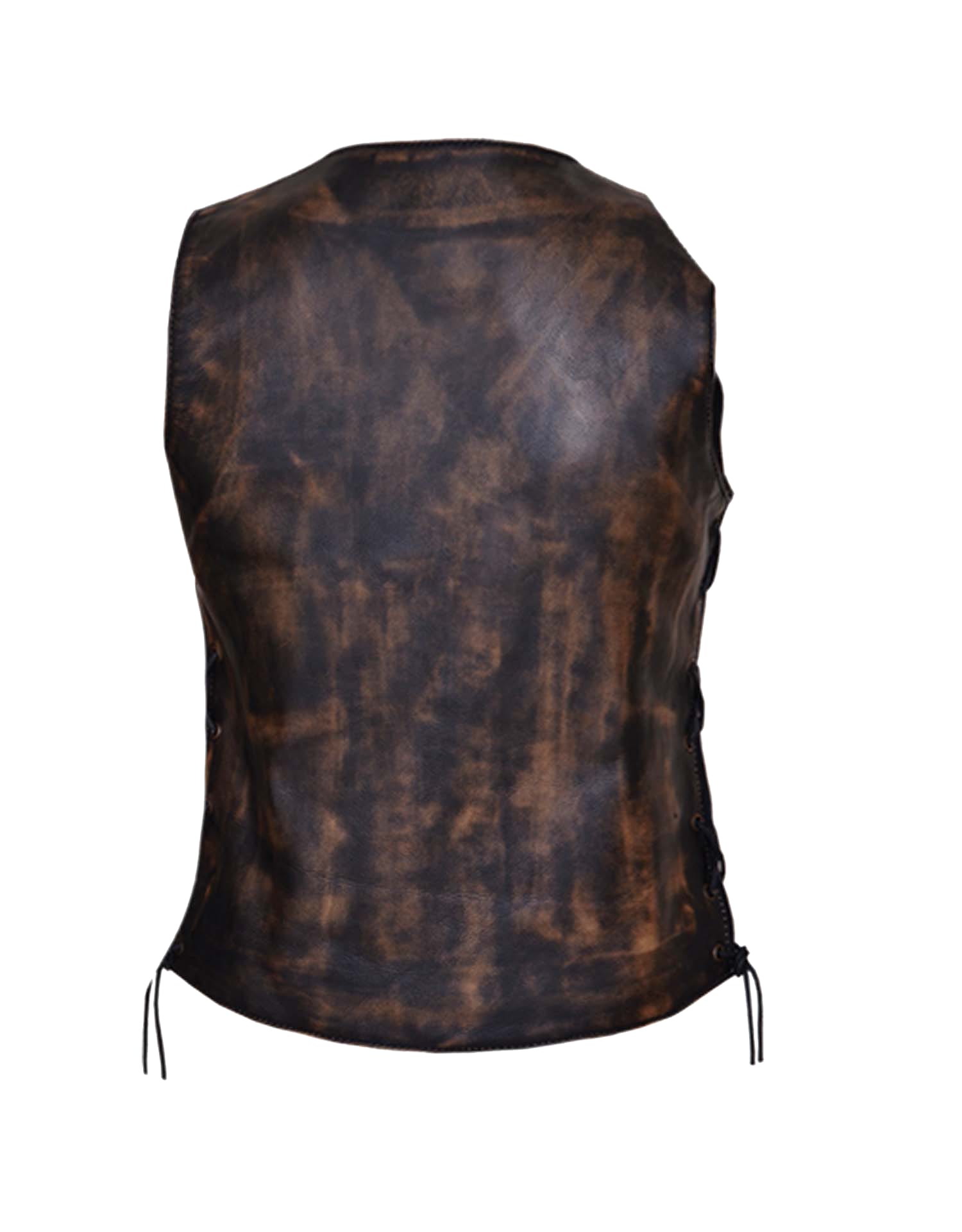 - Ladies Nevada Brown Traditional Ultra Motorcycle Vest in drum dyed naked cowhide