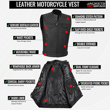Leather vests are an iconic symbol of motorcycle culture. They provide protection and a rugged style for bikers. Club-style leather vests have become a fashion statement in streetwear. CROSS STITCH VEST is a club-style leather vest with a classy, Checkered pattern on the chest and upper back. This vest is made with Diamond Naked Cowhide known for its strength and durability. With time, this leather tends to conform to the body, making it a snug fit and more comfortable especially on long rides.