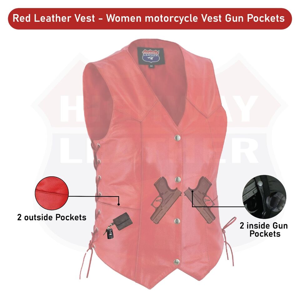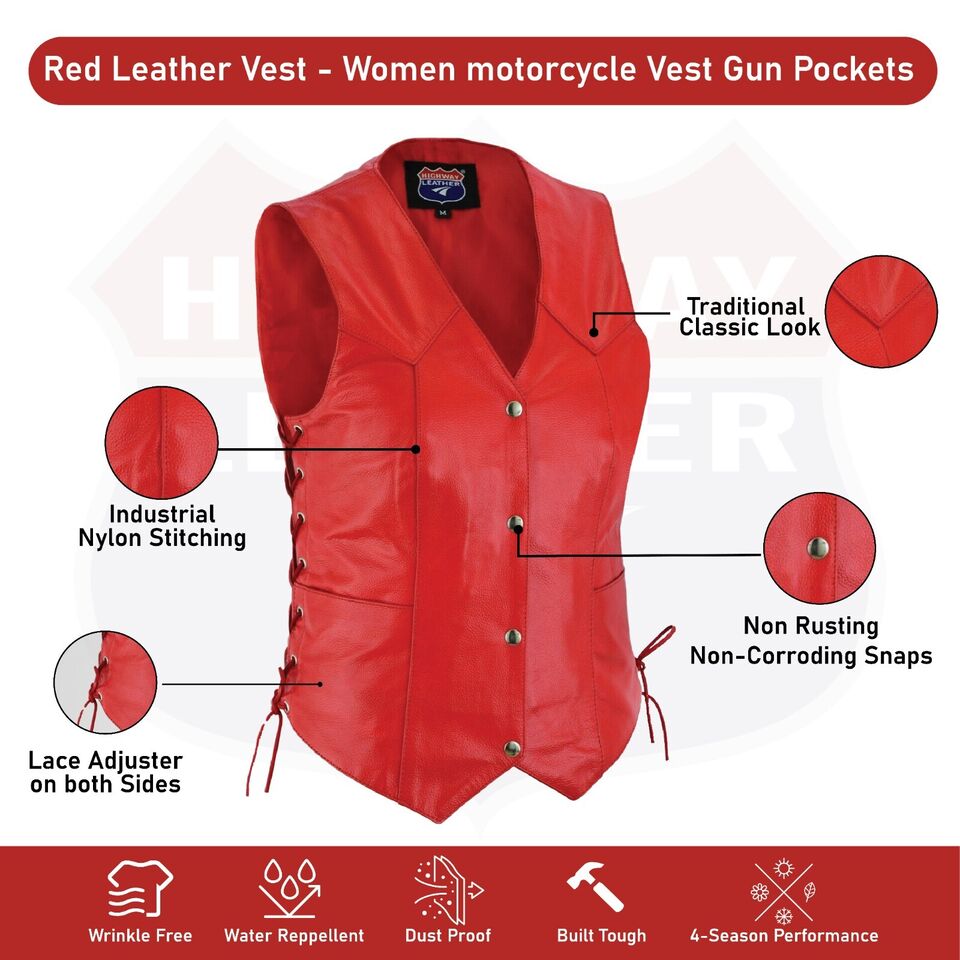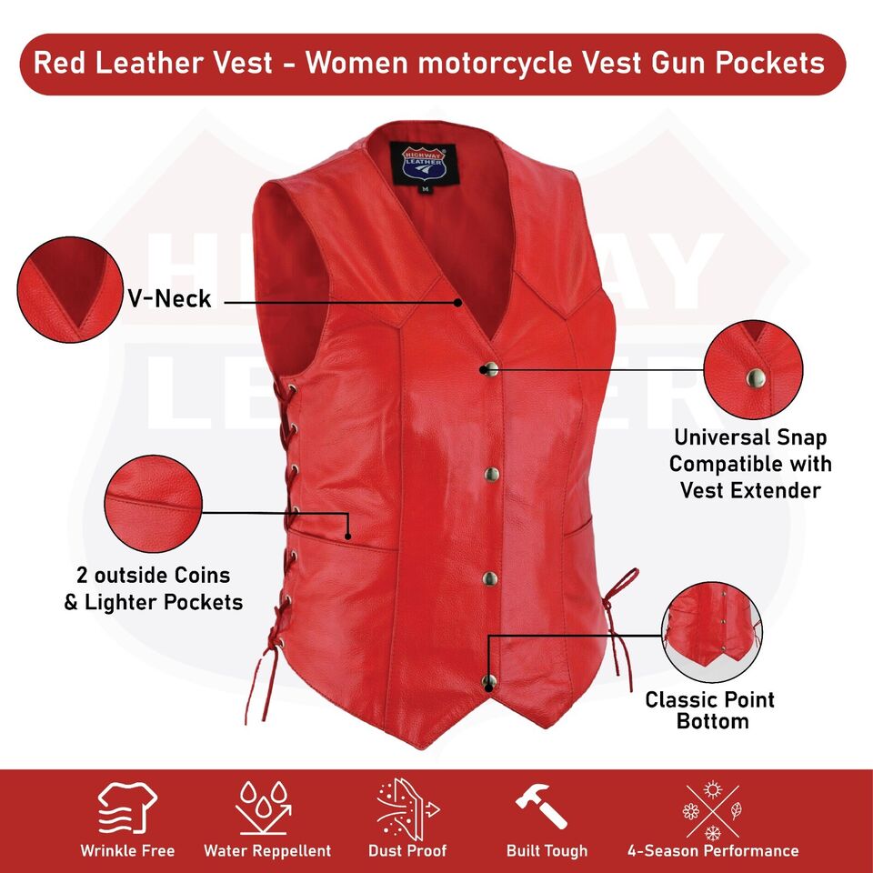 Whether you’re cruising city streets or heading to a rally, this red leather biker vest for women adds attitude, style, and functionality to any Harley-Davidson enthusiast’s gear collection.