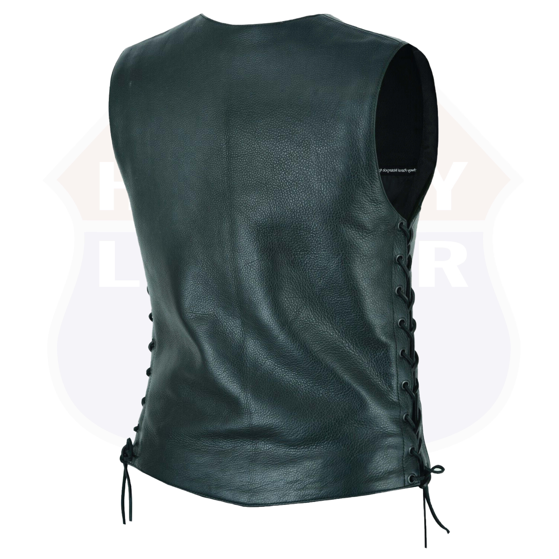 Adjustable Side Lacing: Perfect biker style with lace-up sides for a tailored fit over shirts or jackets.