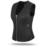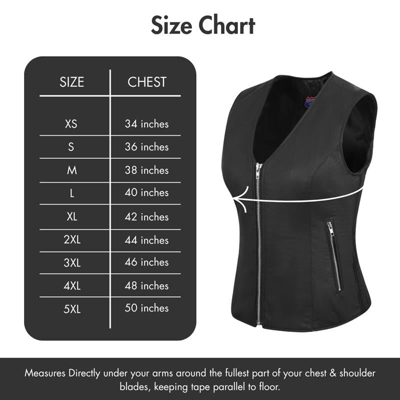 Women’s Ribbed Stretch Leather Motorcycle Vest – Full-Grain Cowhide
