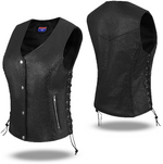 HL14856BRAIDED WOMEN BLACK VEST SIDE LACE M/O BUFFALO LEATHER