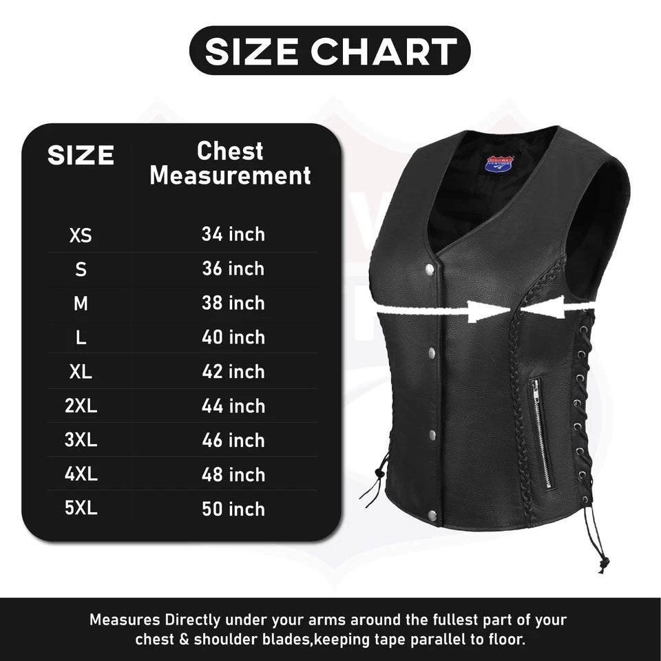 WOMEN BLACK VEST SIDE LACE M/O BUFFALO LEATHER