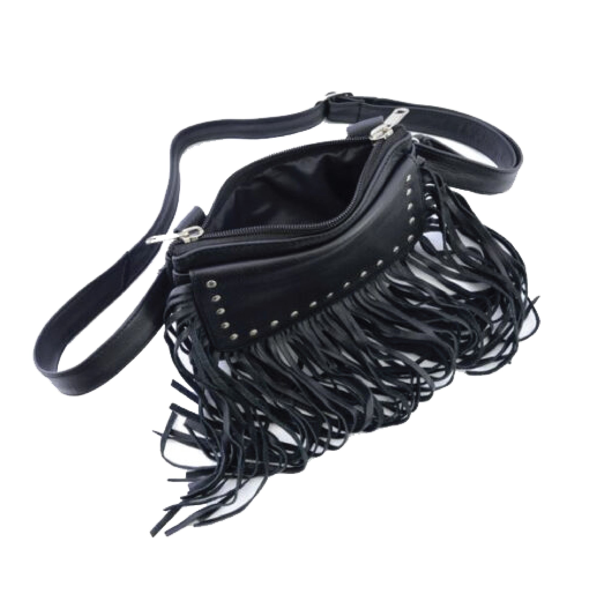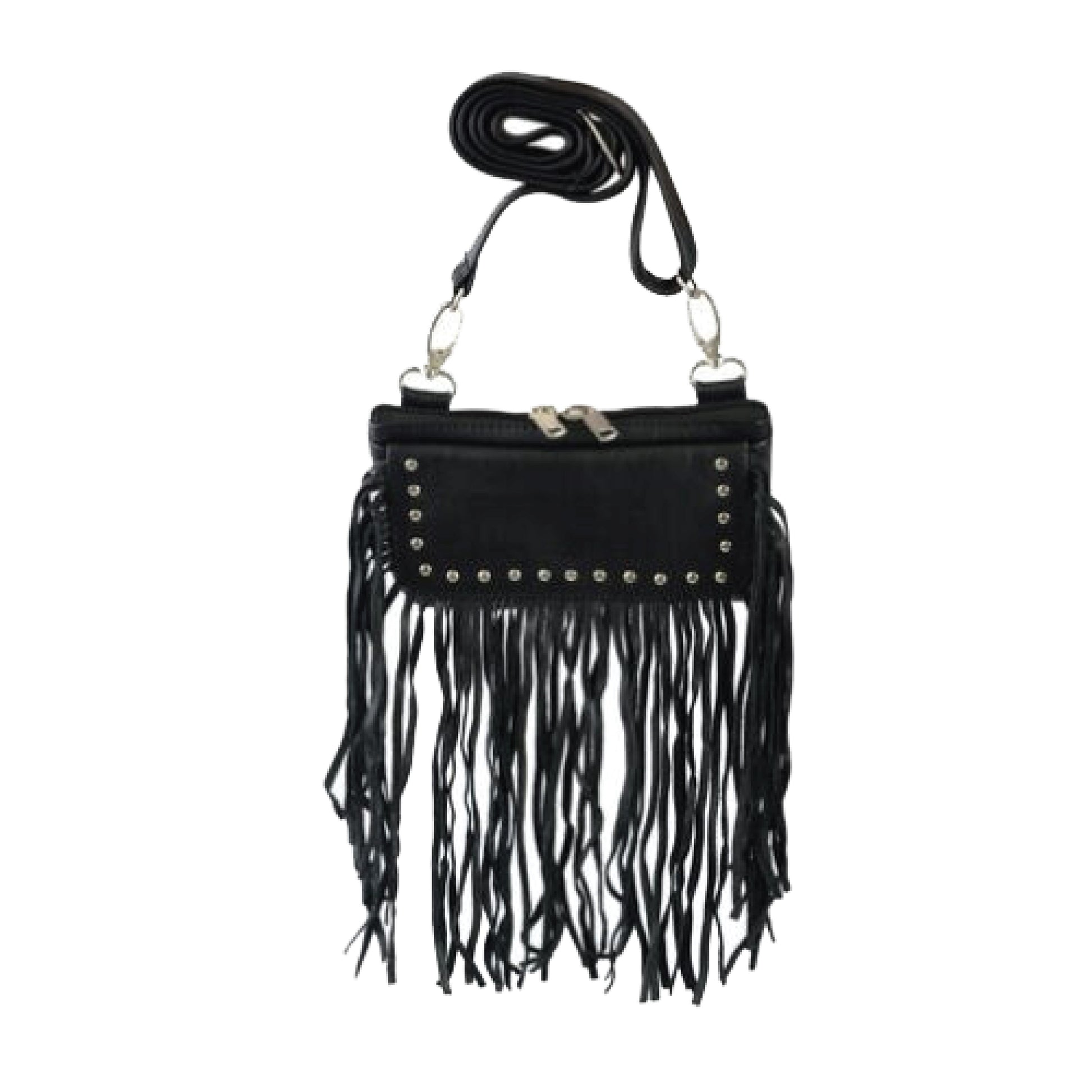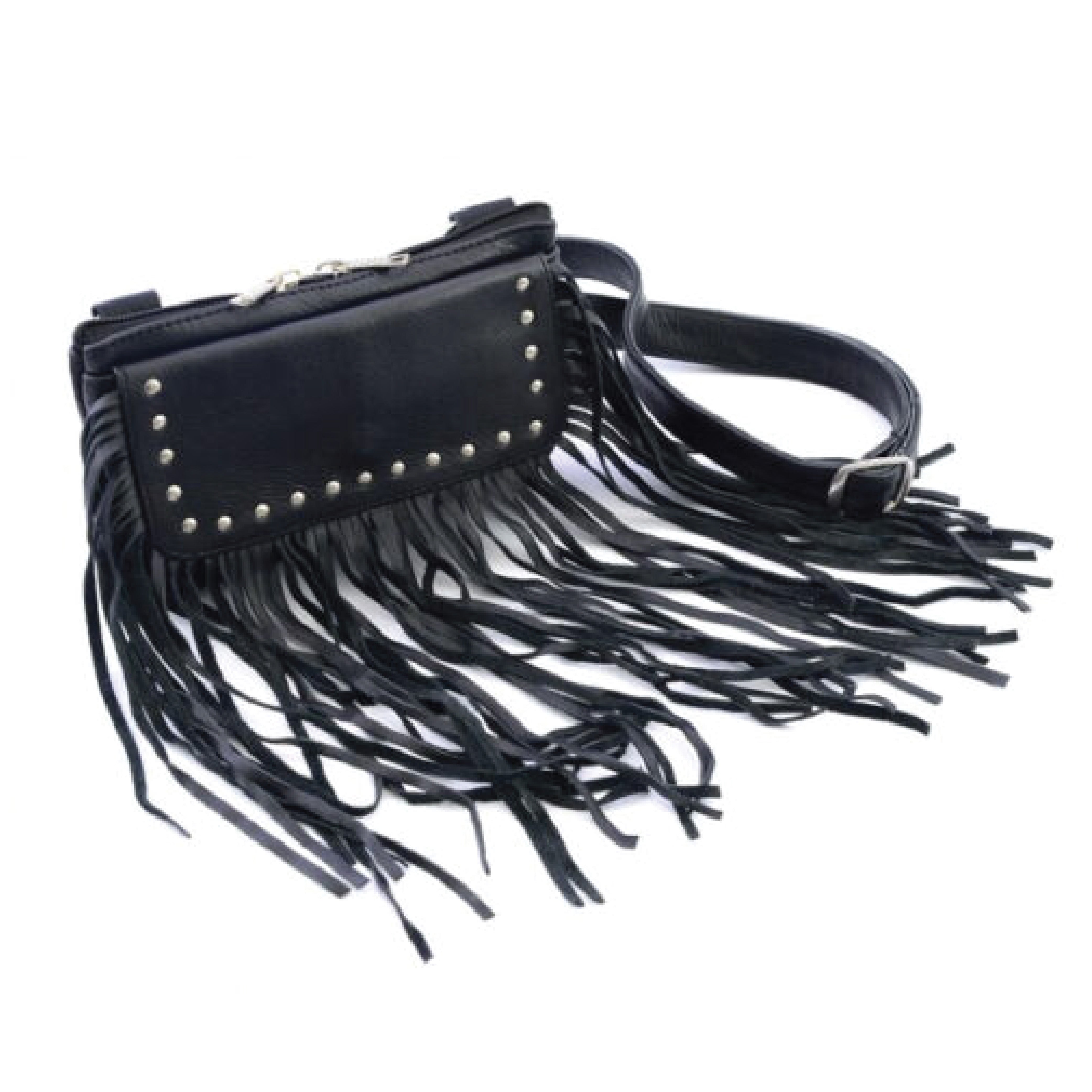 Fringe Rider Combo: Leather Motorcycle Vest + Studded Fringe Bag