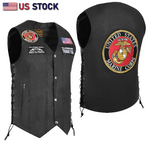 HL3540MARINE Black Men's Genuine Leather 10 Pockets Motorcycle Biker Vest ANARCHY Black SOA