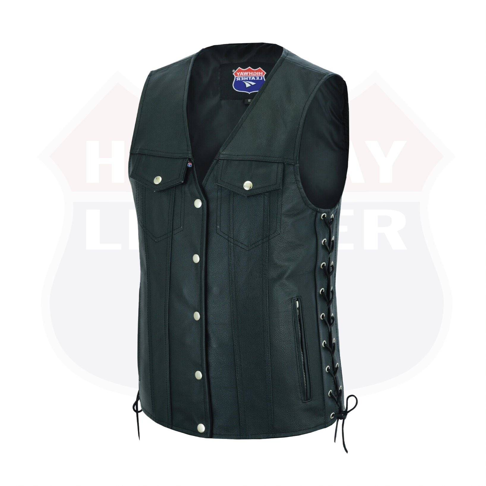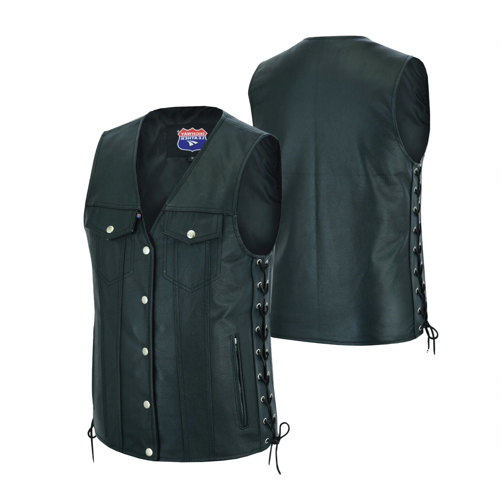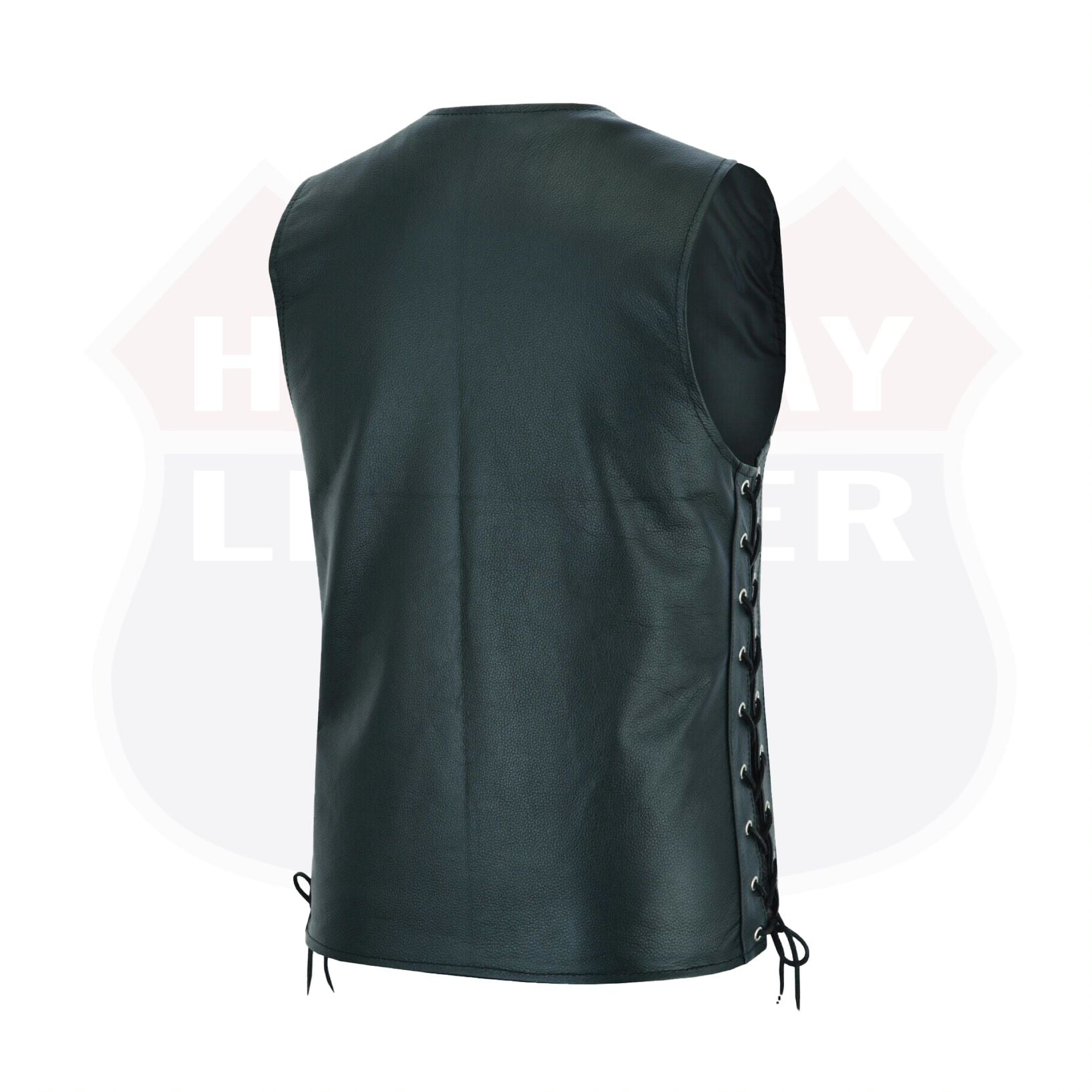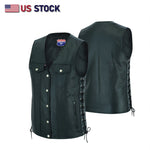 Men Side Lace Denim Style Biker Motorcycle Leather Vest Gun Pockets Carry Arms