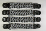 ✅ COMPONENTS AND MATERIAL: 5 1/2" inches Center to Center in length. 4" Long Double Chrome Chain. 3/4" Natural Premium BUFFALO LEATHER Tabs
